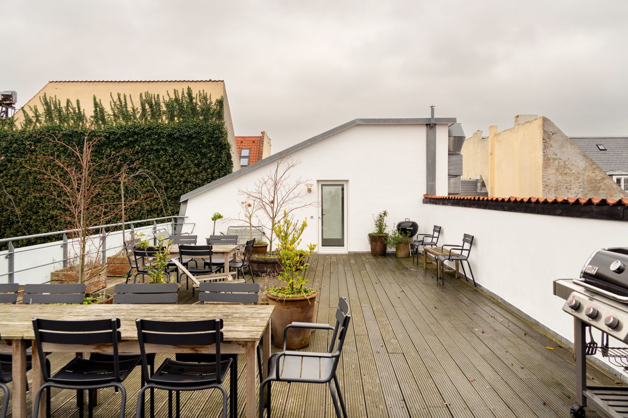 Ejendommen byder på elevator med direkte adgang til en stor fælles tagterrasse, hvor du kan nyde solen og den smukkeste udsigt over byens tage – et sjældent privilegium midt i København K.